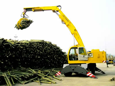 QLYS-DZ系列液壓輪胎式抓料機是一種流動式裝卸、堆垛和拆垛專用設(shè)備,含有多項專利技術(shù)。該產(chǎn)品采用折疊式吊臂,克服了汽車起重機軟索起重時抓斗易打轉(zhuǎn)和作業(yè)時無下壓力,而對較積實的物料抓取效果差等不足。是對草葦、木材、毛竹、廢紙、土、砂、石等泡松散軟原料進行裝卸、堆垛和拆垛作業(yè)的最佳設(shè)備。