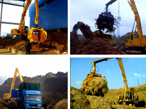 為秸稈原料特制的專用抓具,生物質(zhì)電廠原料抓具,大致有散草類、枝椏材類和蚌式三種抓具。其中立式抓具,下壓力強,適用于積實撕扯類原料。而臥式抓具具有抓取容積大、堆垛高的優(yōu)點。散草抓具增加了可拆式鋼板網(wǎng)和兩端板,既可抓散草,也可抓木片等散料,做到一機多用。