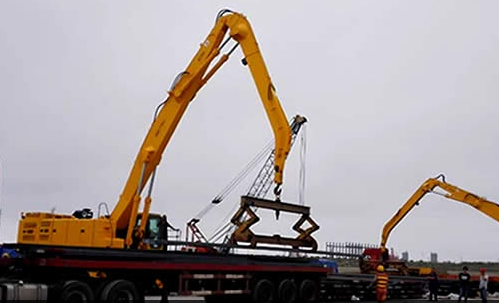 The grab is equipped with special slings for grasping, loading and unloading various steels